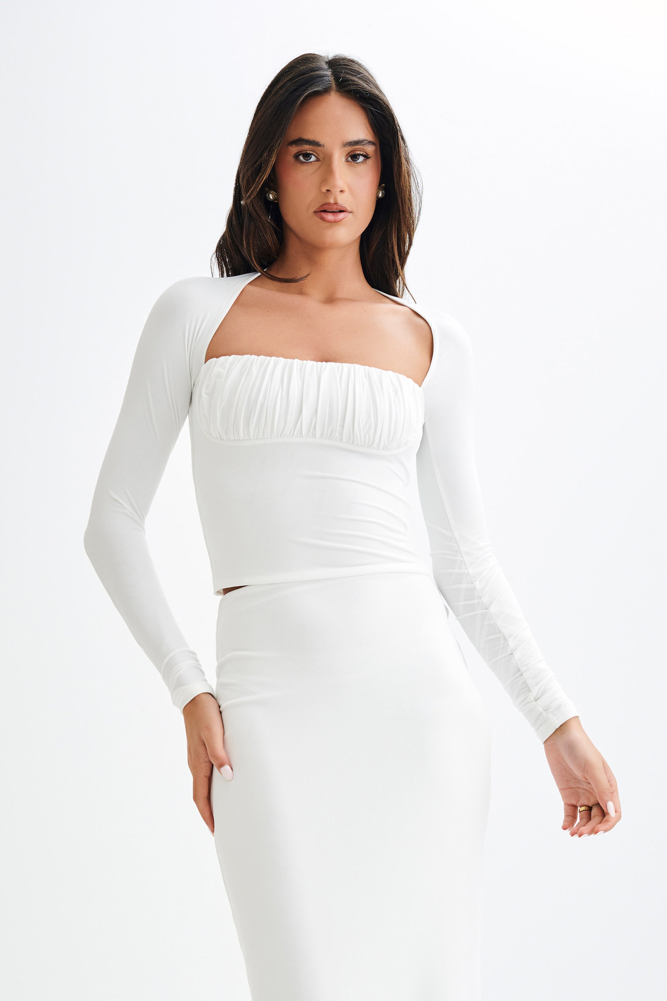 The BILLIE Slinky Ruched Long Sleeve Top combines elegance and comfort, making it a versatile addition to your wardrobe. This top features a straight neckline that offers a modern, clean look, while the ruched bust panel adds a touch of texture and visual interest. The lined bodice ensures a smooth and comfortable fit, and the long sleeves provide coverage while maintaining a chic silhouette. Perfect for both casual outings and dressier occasions, the Billie Slinky Ruched Long Sleeve Top is a stylish choice that effortlessly enhances any outfit.